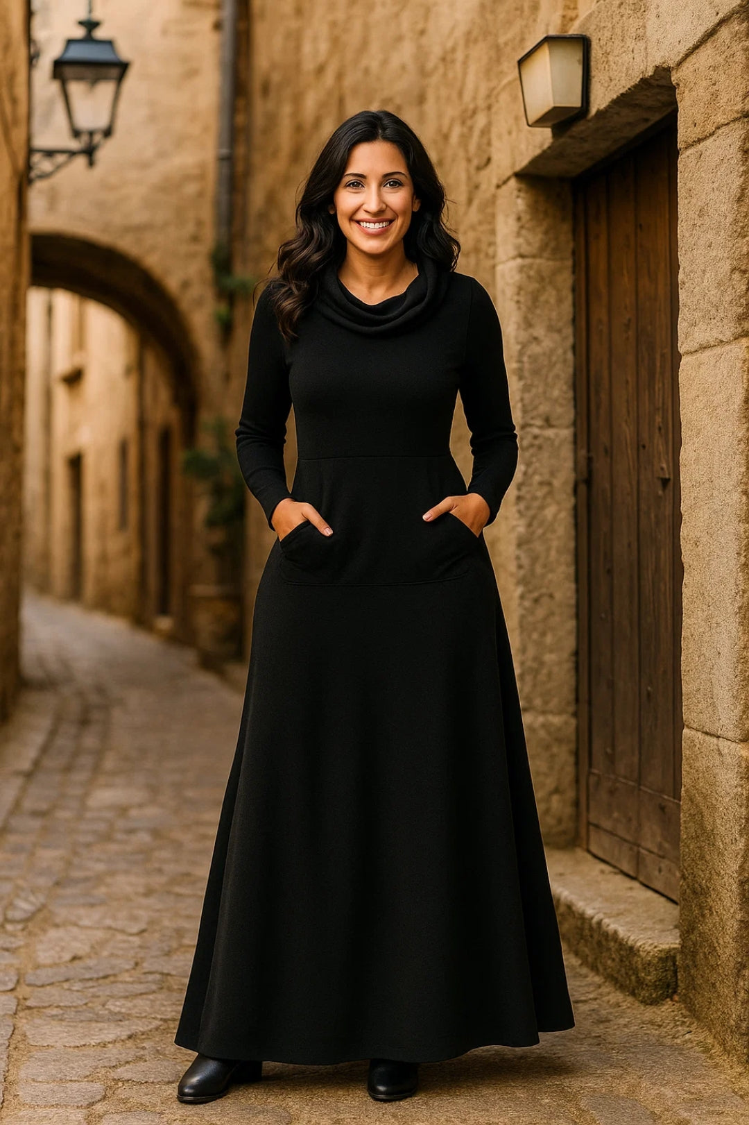 Abito lungo con collo morbido | Maniche lunghe | Tasche frontali
