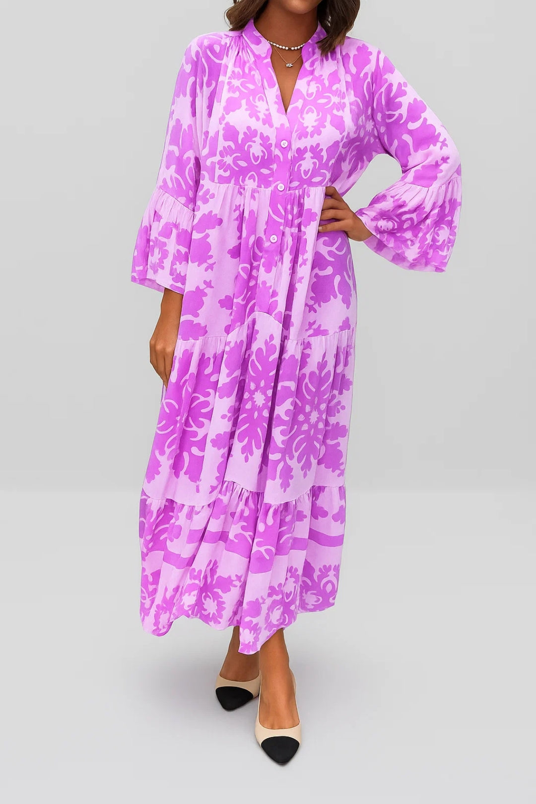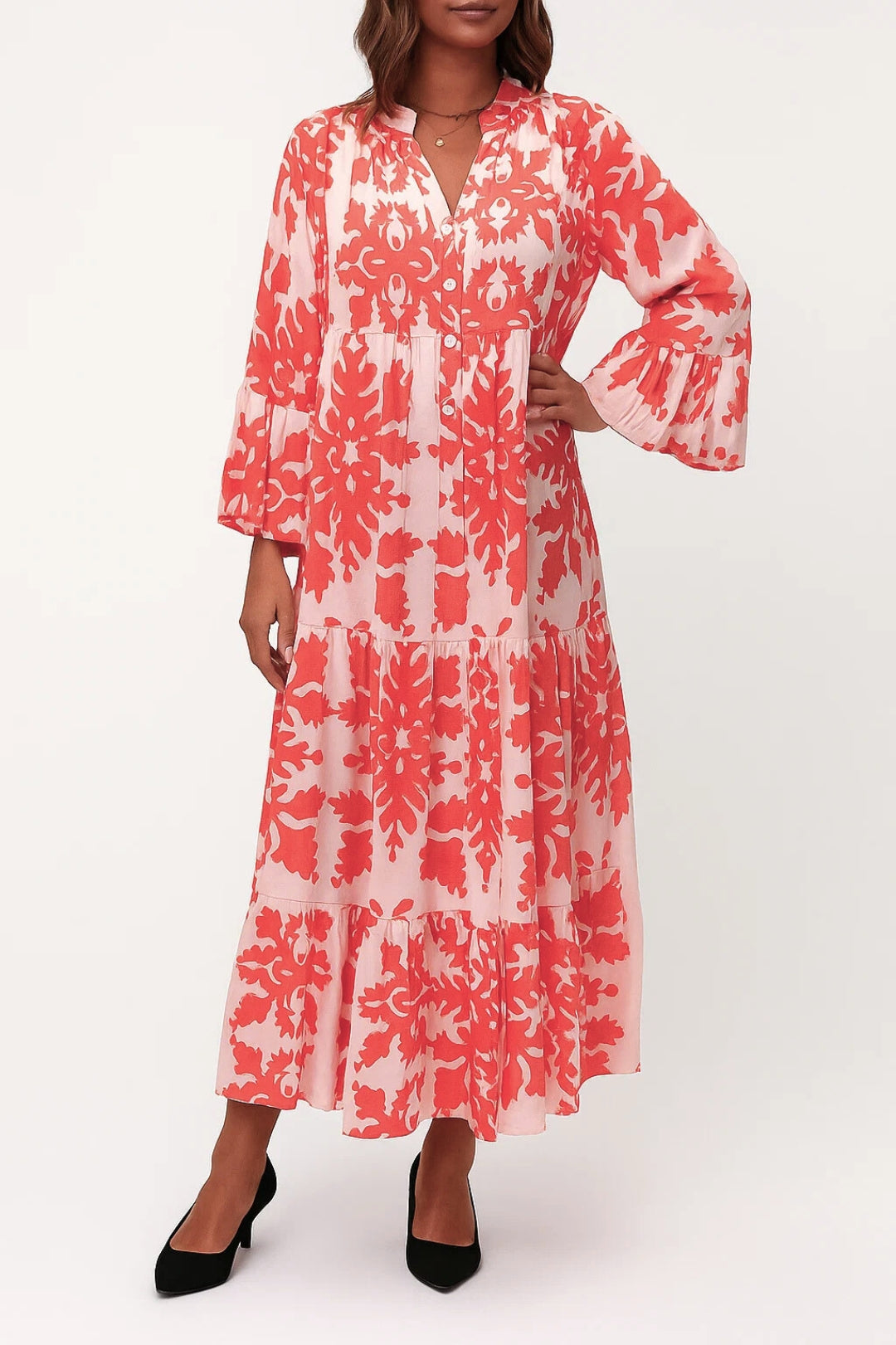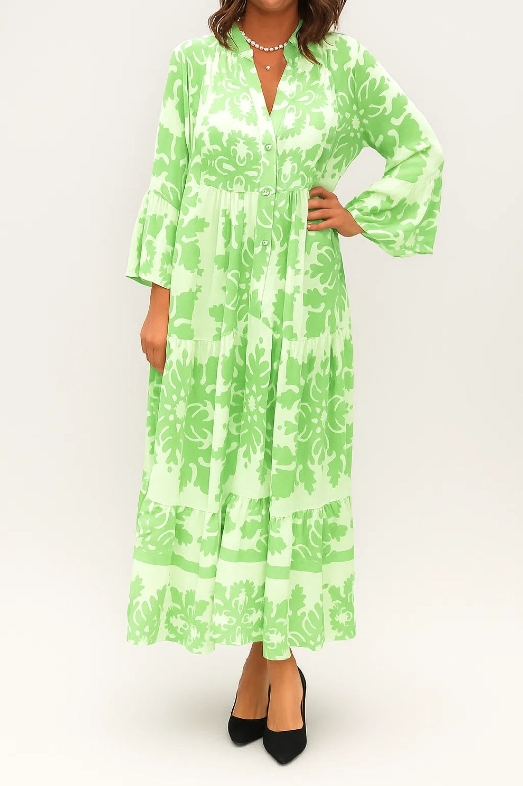 Questo abito lungo con stampa floreale all-over è l’ideale per un look fresco e spensierato.