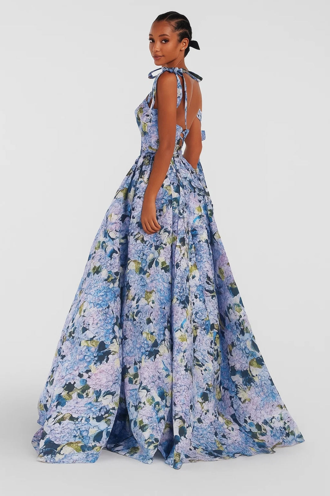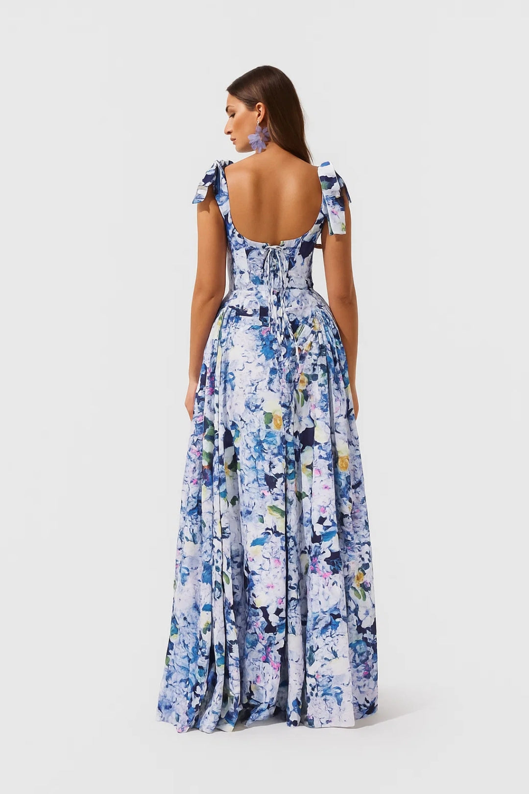 Abito lungo floreale con spalline a fiocco | Eleganza romantica