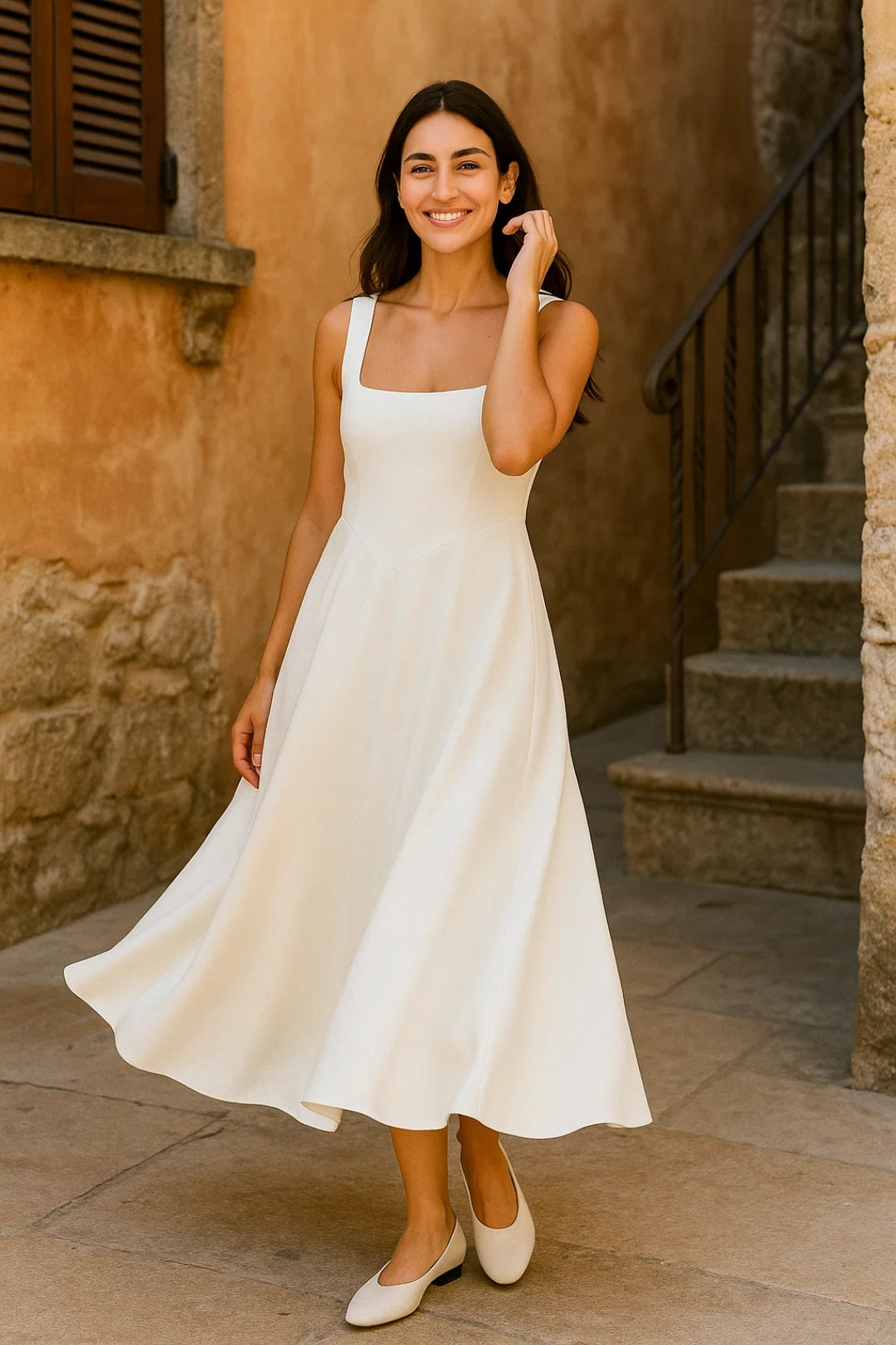 Abito lungo in maglia fluida | Scollo quadrato | Eleganza minimal