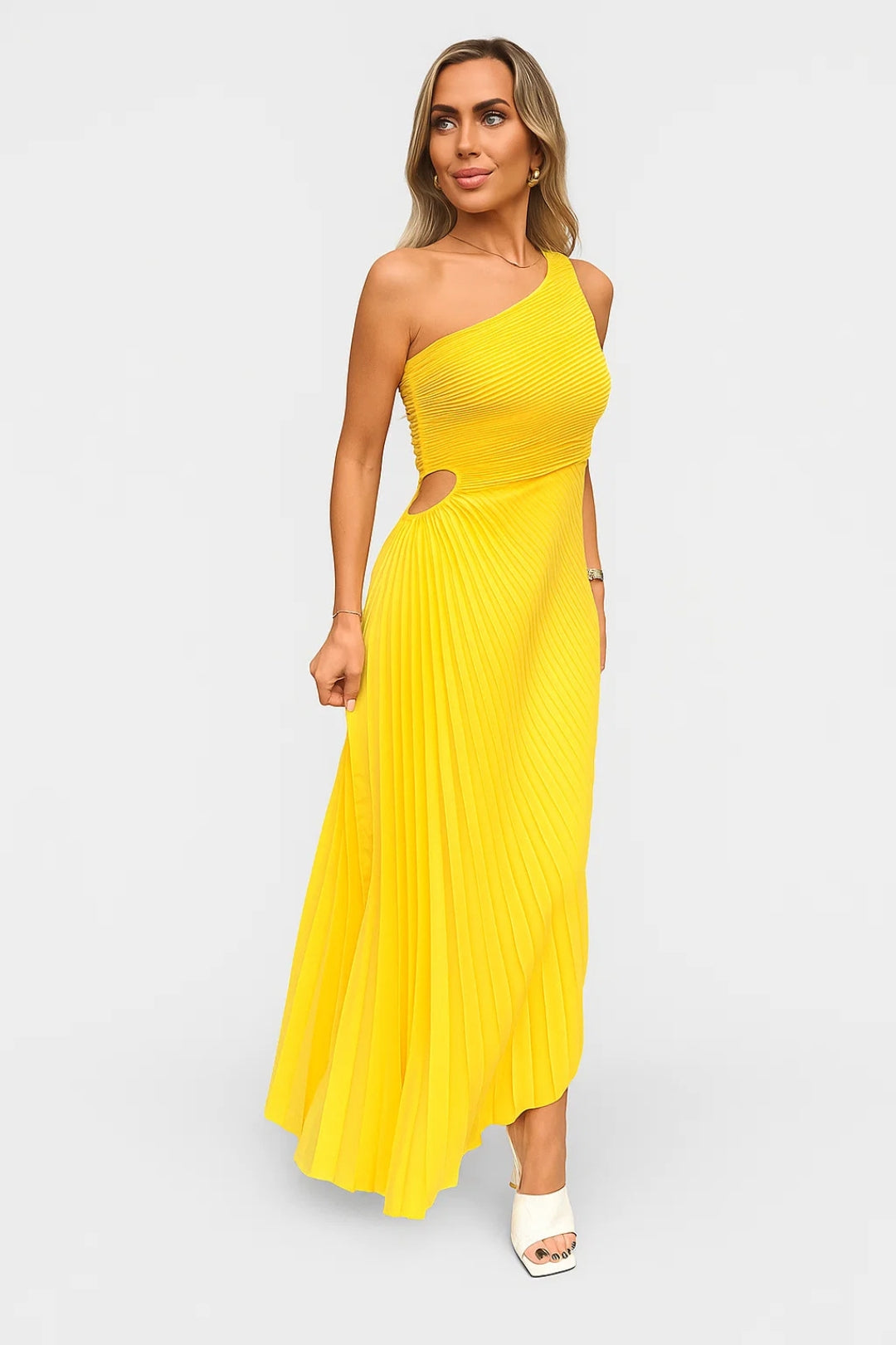 Abito Lungo Monospalla Plissettato | Eleganza Estiva | Design Asimmetrico