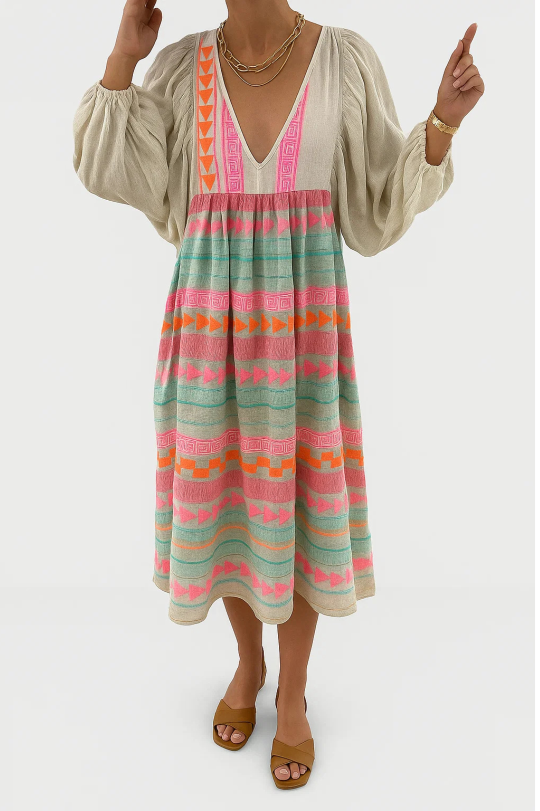 Abito Maxi Boho | Cotone e Lino | Colorato e Confortevole