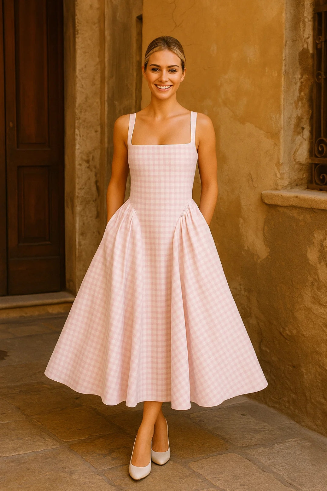 Abito midi con scollo dritto e fantasia vichy | Design svasato