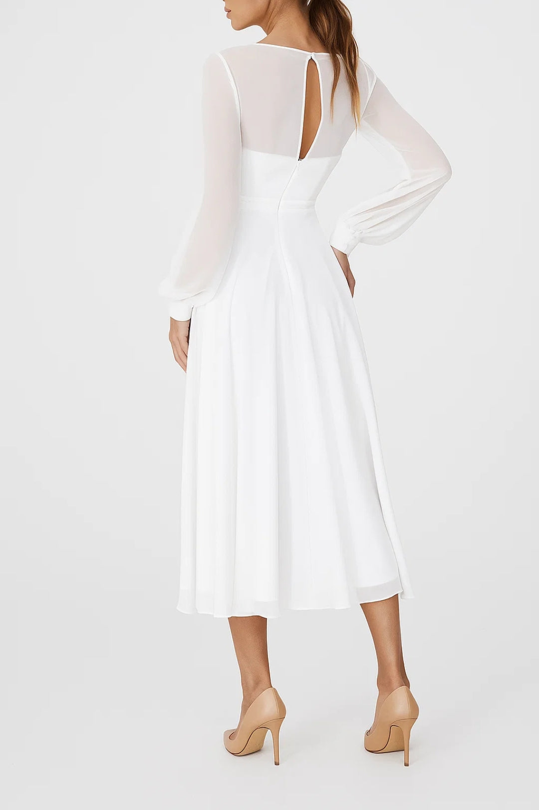 Abito Midi Elegante | Maniche Trasparenti | Taglio Fluido e Raffinato