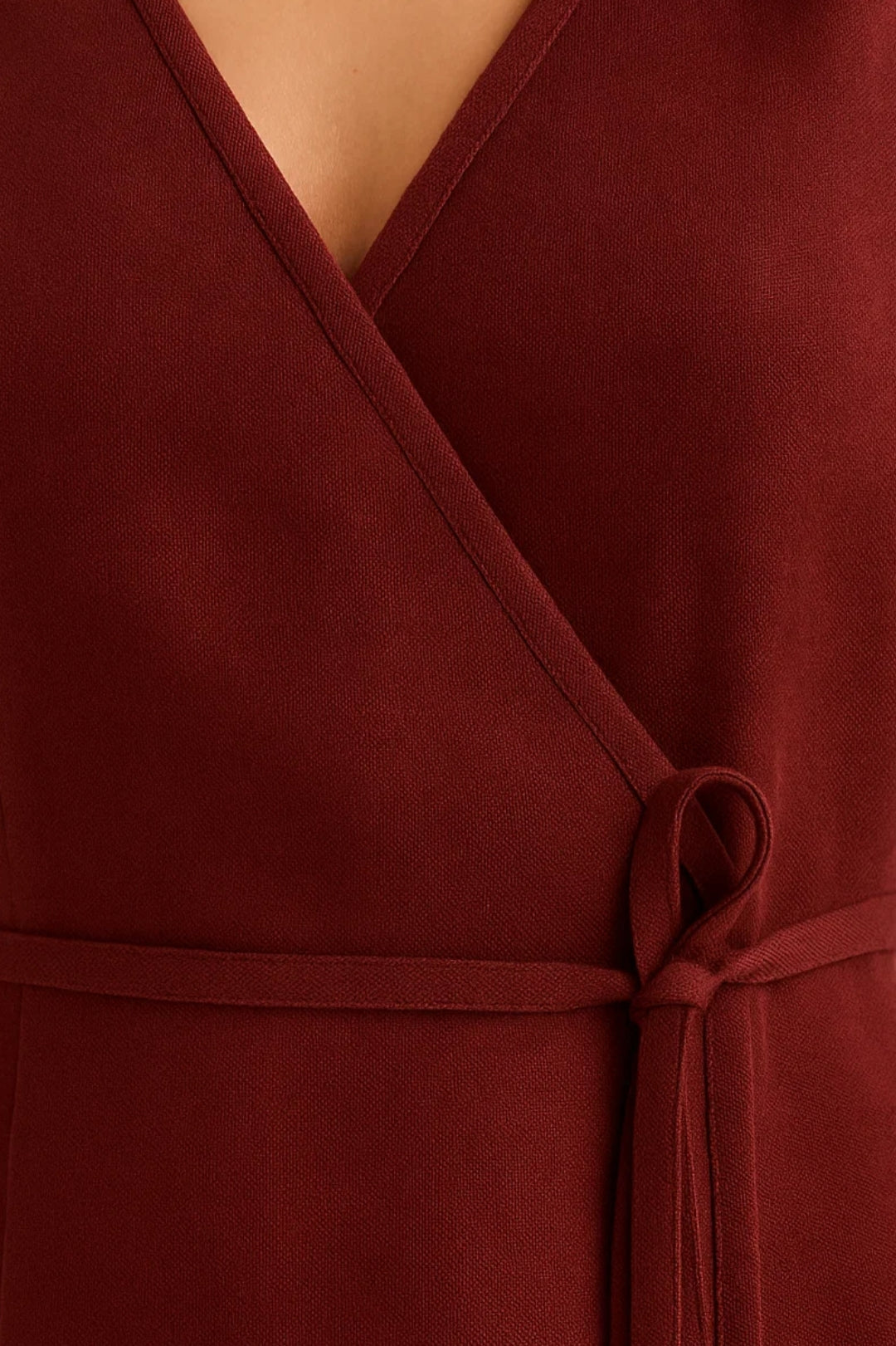 Abito midi incrociato senza maniche con cintura in vita