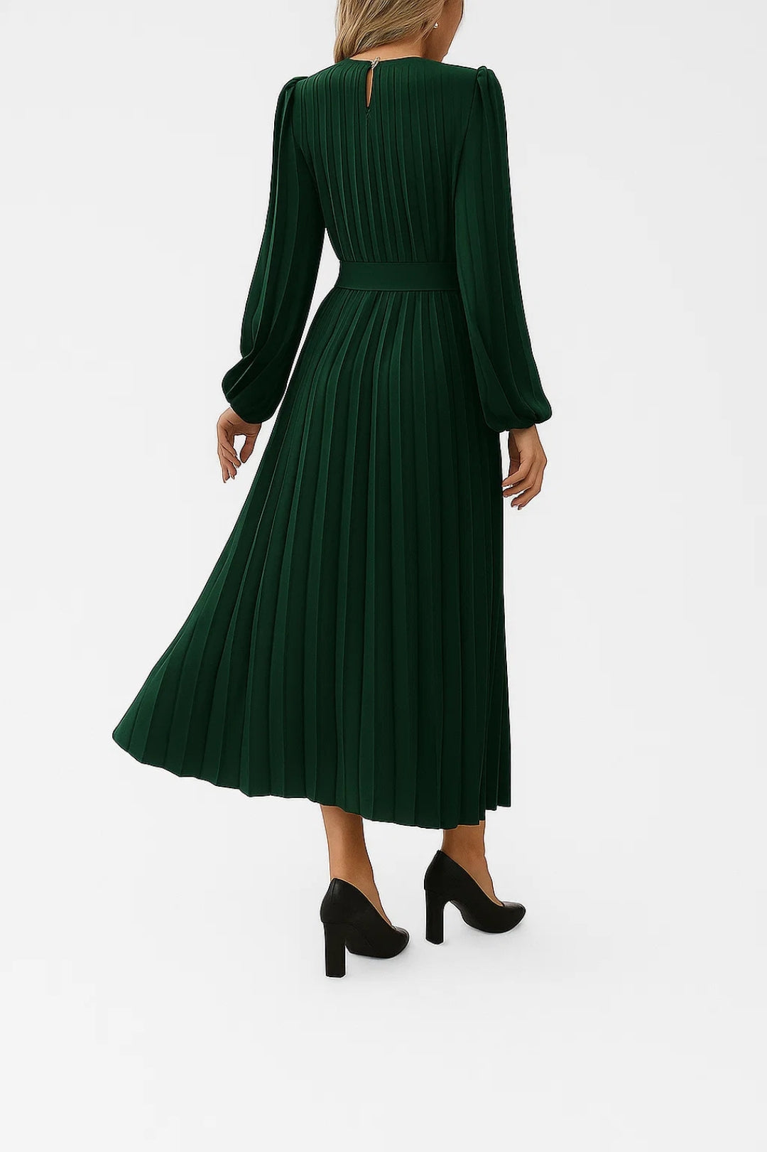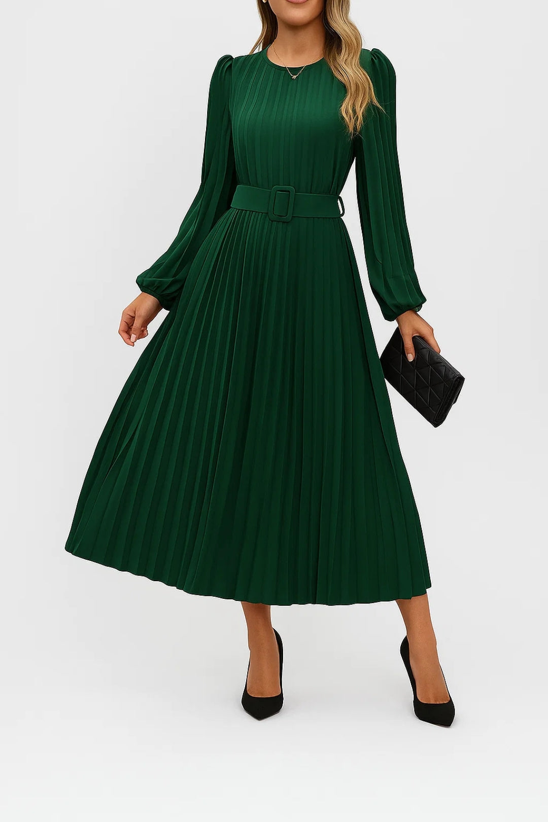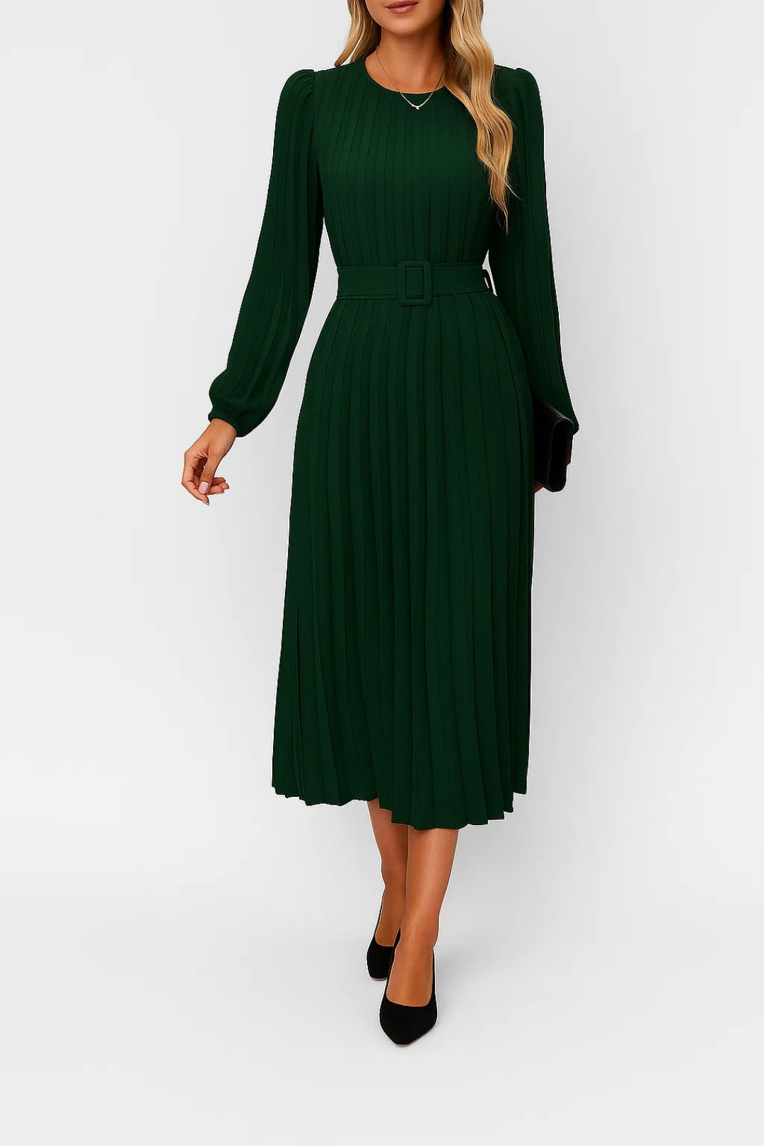 Abito midi plissettato con cintura | Maniche lunghe a sbuffo | Elegante e femminile