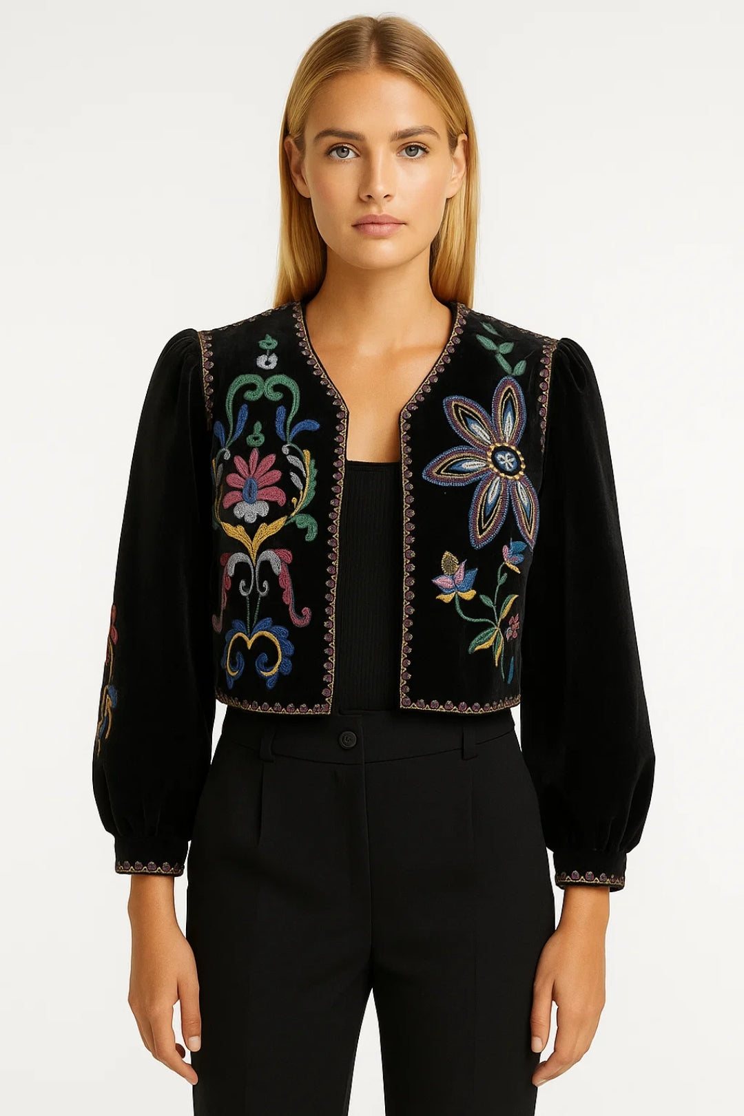 Questa giacca decorata con ricami vivaci e dettagli ricercati è perfetta per chi ama distinguersi con stile.