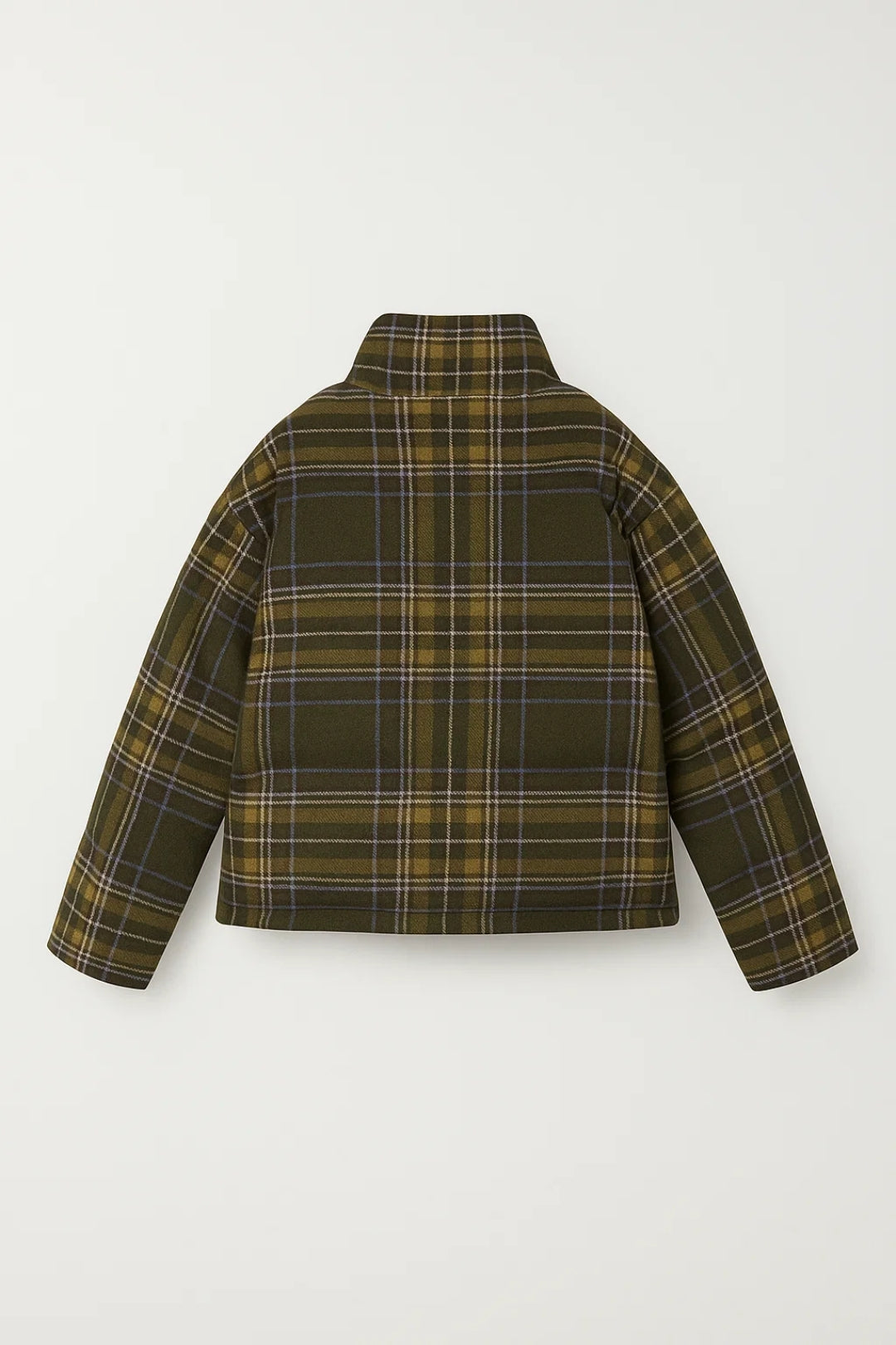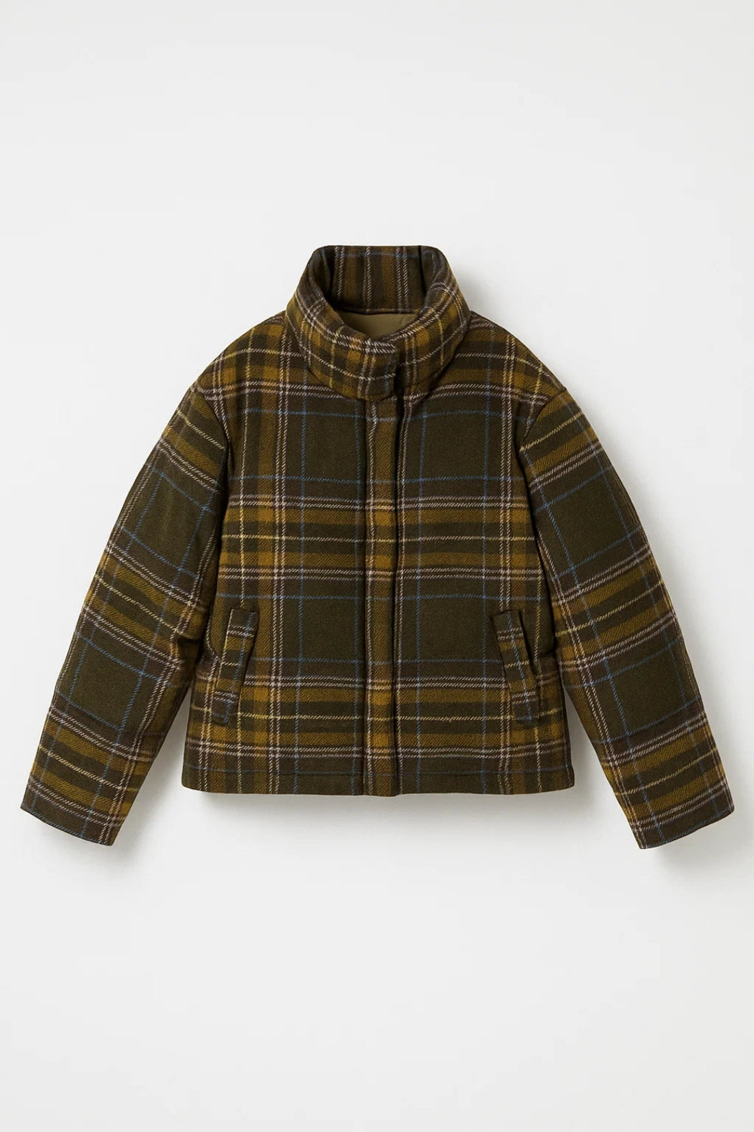 Questa giacca corta trapuntata con motivo scozzese è la scelta ideale per uno stile classico ma contemporaneo.