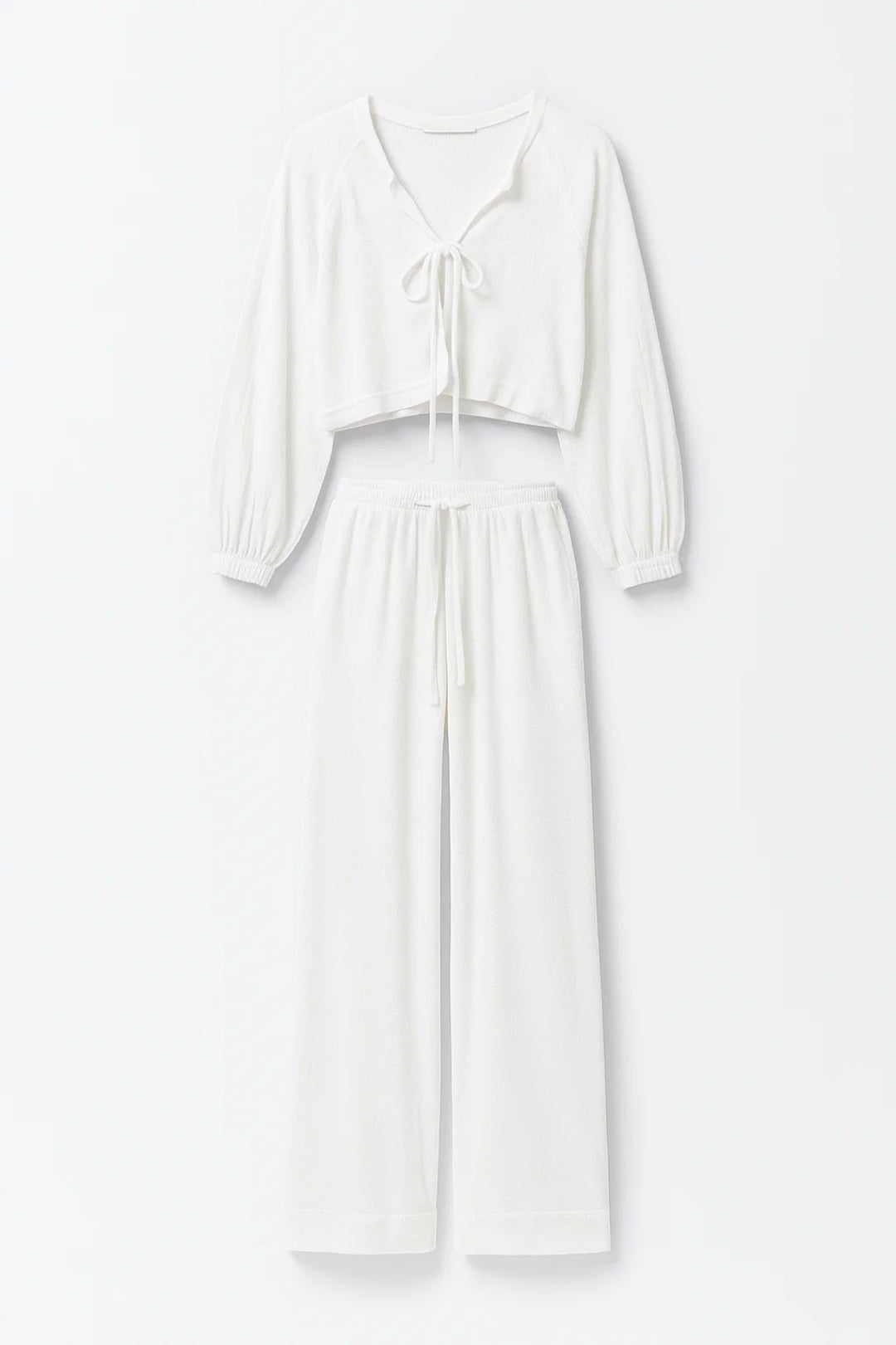 Set coordinata in tessuto leggero | Top con nodo e pantaloni larghi