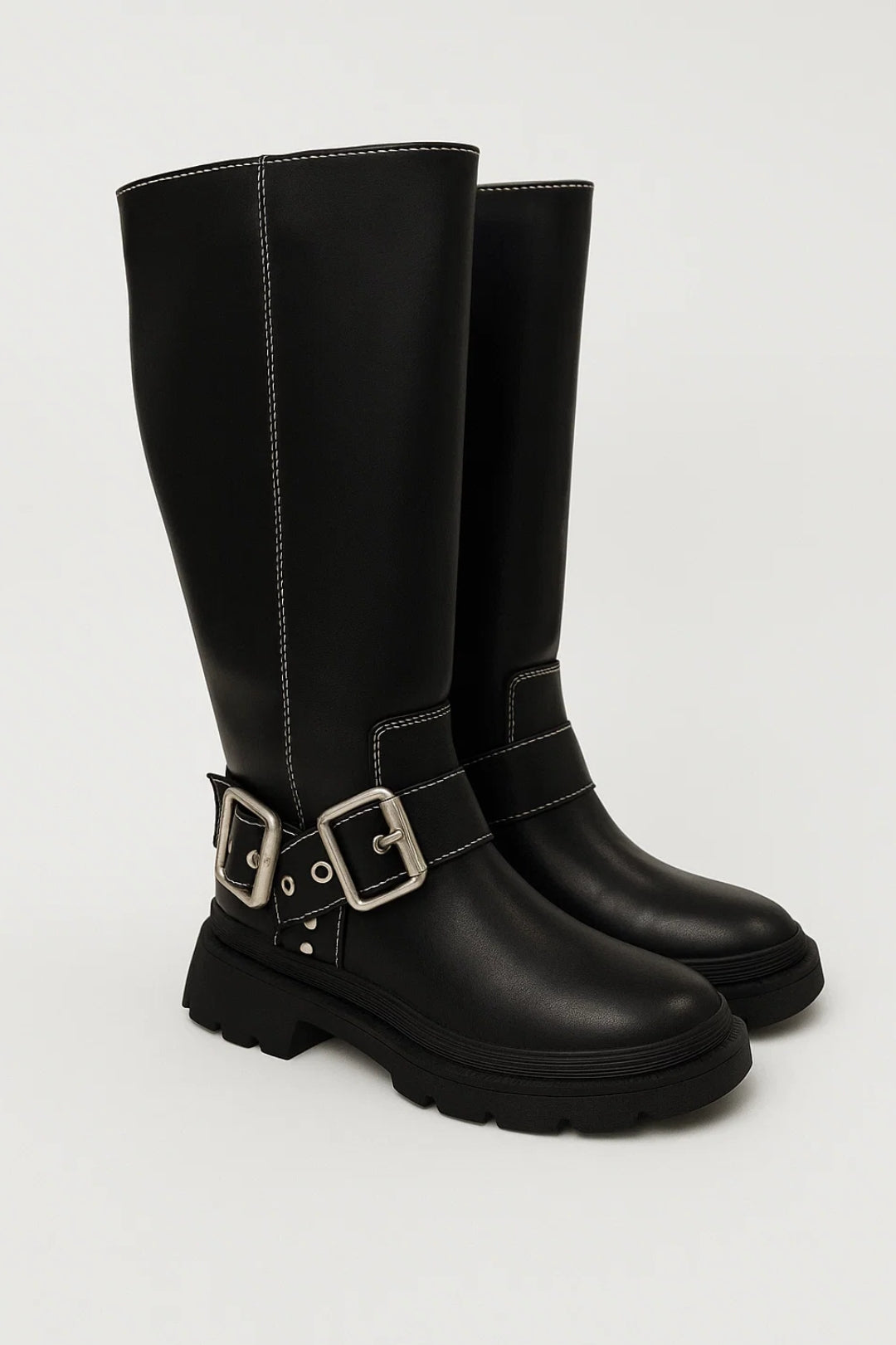 Stivali al ginocchio con fibbia decorativa e suola spessa