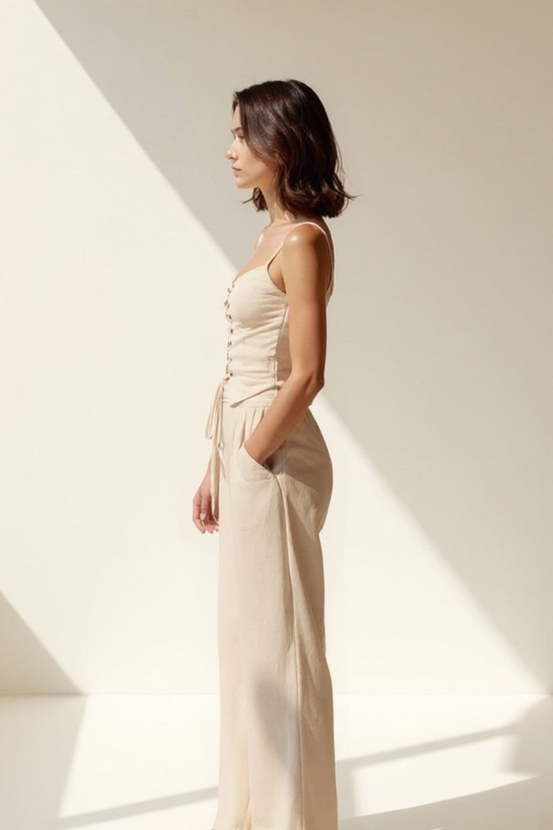 Tuta estiva con lacci frontali | Spalline sottili e pantaloni ampi