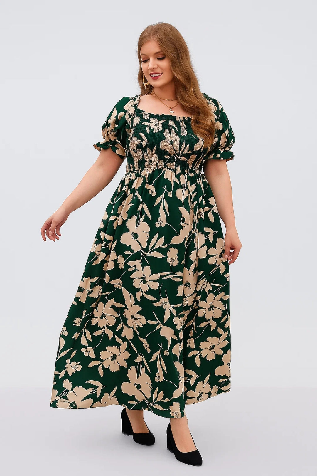 Vestito lungo con stampa floreale | Scollo quadrato e maniche a palloncino